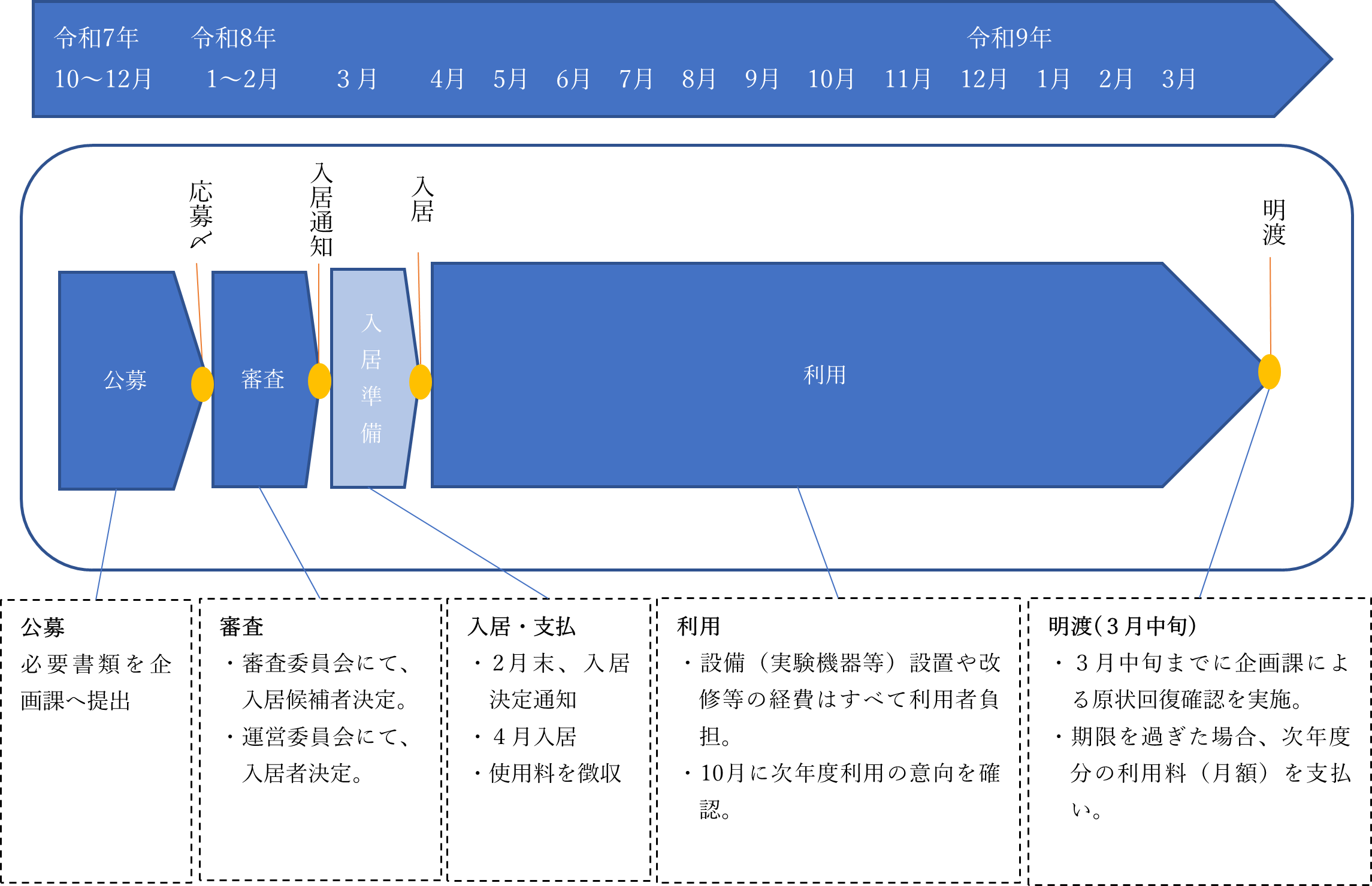 応募資格 本学の産官学連携活動を実施するため研究・実験用レンタルスペース等を必要とする次の者
